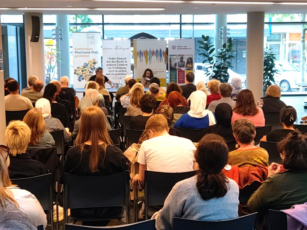 Am 24.04.2026 veranstaltete die Arbeitsgemeinschaft der Beiräte für Migration und Integration Rheinland-Pfalz in Kooperation mit dem Beirat für Migration und Integration der Stadt Mainz und dem Mainzer Flüchtlingsrat eine Buchlesung mit der bekannten deutsch-israelische Journalistin und Autorin Alena Jabarine im Stadthaus Mainz.