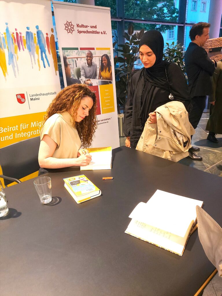 Im Anschluss an die Lesestunde nahm sich Alena Jabarine genügend Zeit, um auf all die vielen Fragen aus dem Publikum zu antworten. Die Buchlesung endete mit einem großen Beifall und einer anschließenden Signierstunde Ihres Buches.