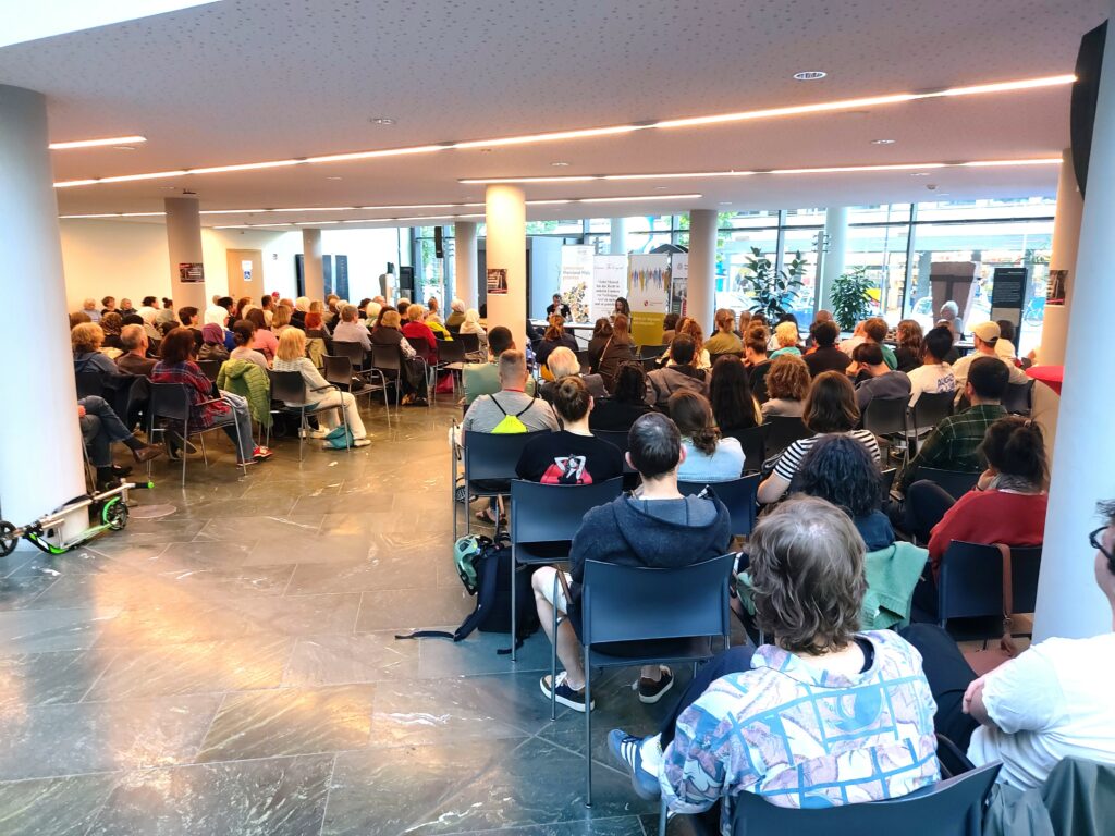 Mit über 100 Anmeldungen zeigte sich bereits im Vorfeld eine hohe Nachfrage und damit ein großes Interesse, was sich am Abend der Buchlesung bestätigte. Moderiert wurde der Abend von Riad Othmann, Mitarbeiter von Medico International e.V..