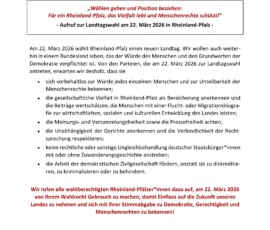 Gemeinsamer Wahlaufruf zur Landtagswahl am 22. März.2026 in Rheinland-Pfalz